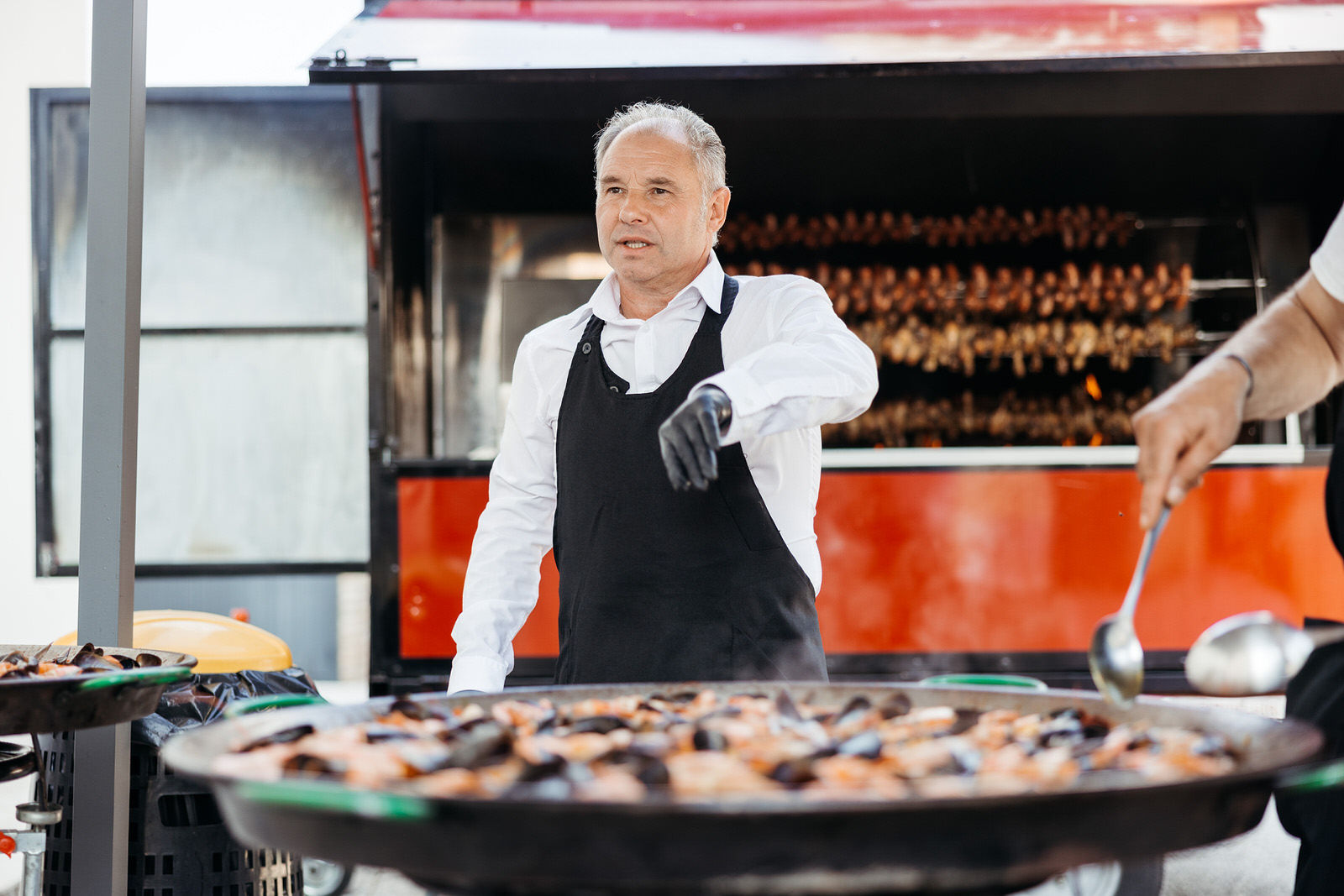 Dal servizio al tavolo, alle cotture espresse a vista, molto suggestive e scenografiche con spiedi, griglie, braciere, primi piatti, paelle, fritti ecc.